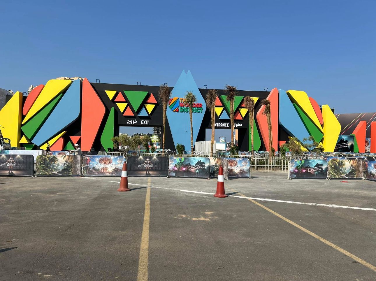 Oplex Builds delivered the full temporary structure and access system for the Wonder District main entrance at Riyadh Season. The project included multi level cuplock scaffolding, public entry and exit tunnels, and architectural cladding to create a branded festival façade. Built on a live site with heavy foot traffic and strict safety requirements, the structure was engineered to support smooth crowd flow and strong visual impact.